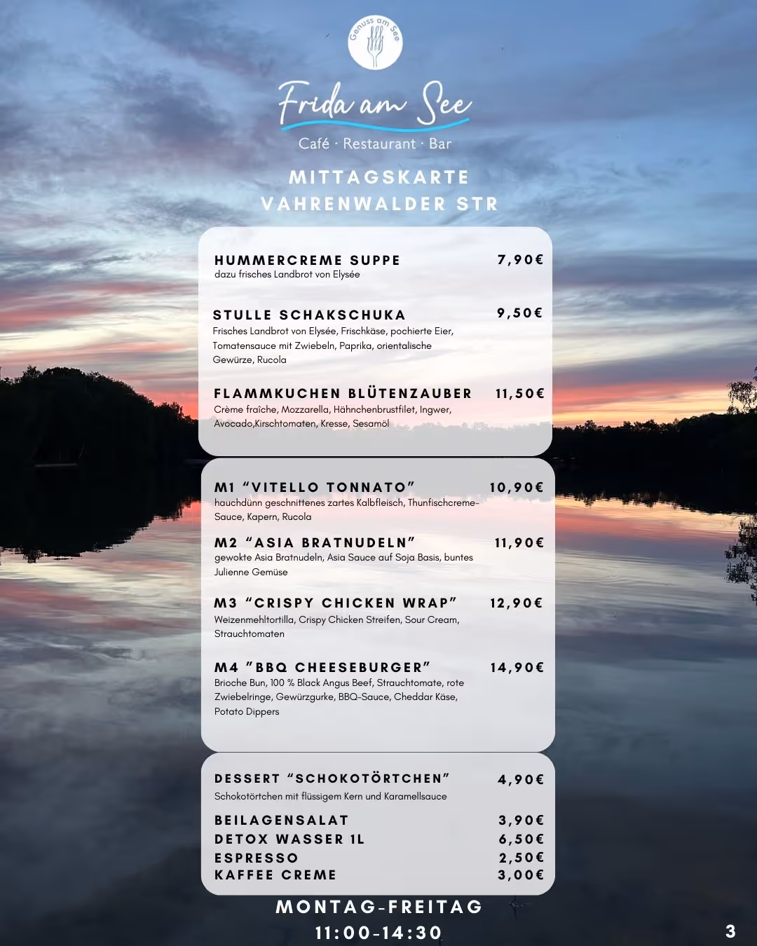 Entdecken Sie unseren wöchentlich wechselnden Mittagstisch, täglich von 11:00 bis 14:30 Uhr, voller regionaler und saisonaler Köstlichkeiten.